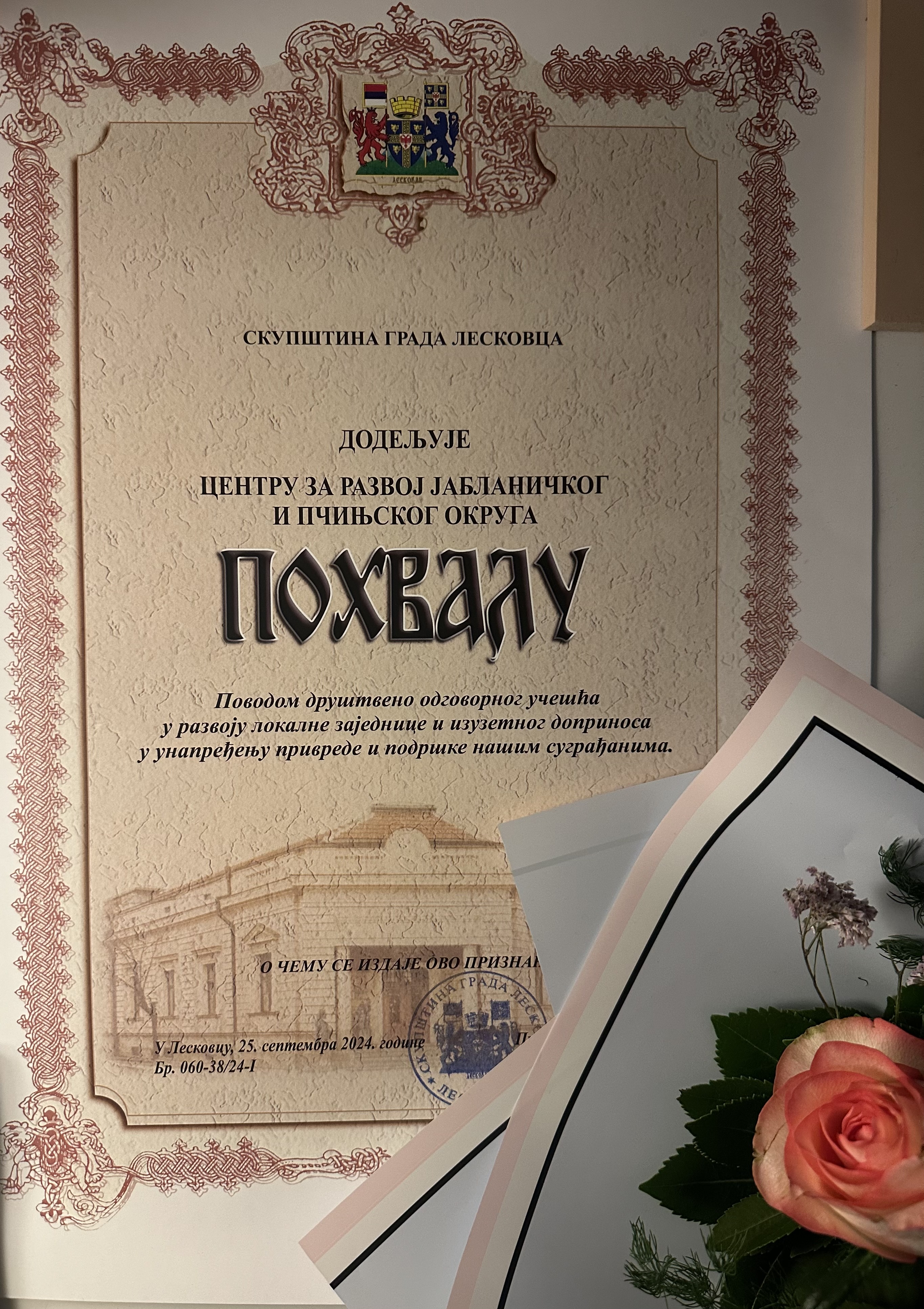Na svečanoj sednici Skupštine Leskovca povodom 11. oktobra, Dana grada, Centru za razvoj Jablaničkog i Pčinjskog okruga dodeljena je Oktobarska nagrada - Pohvala za društveno odgovorno učešće u razvoju lokalne zajednice i izuzetnog doprinosa u unapređenju privrede i podrške sugrađanima.
